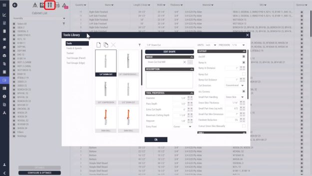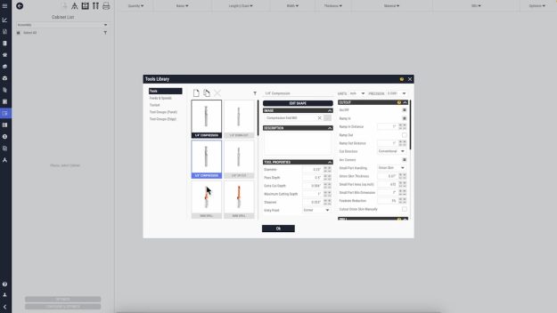 Buy Now FREE Trial Buy Now FREE Trial Creating a Toolset Video Tutorial – 6min https://youtu.be/CrX5P6o1R4I Back to Video Tutorials materials, cut, drill, bit, custom, create, build, standard, set, panel, edge, sheet, feed, speed, feature, help
