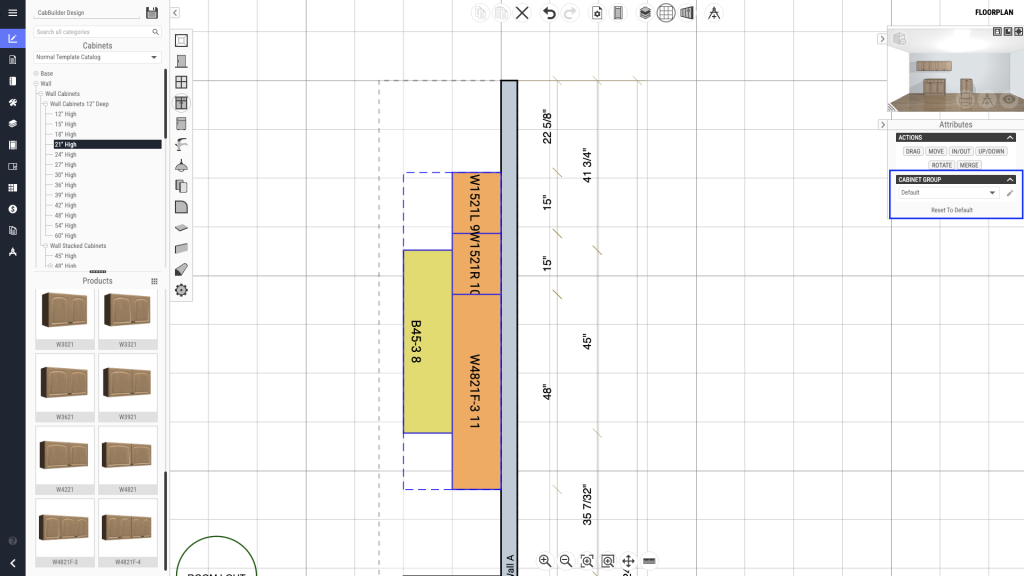 Create a lasso around a group of cabinets to be able to assign them all a different design group