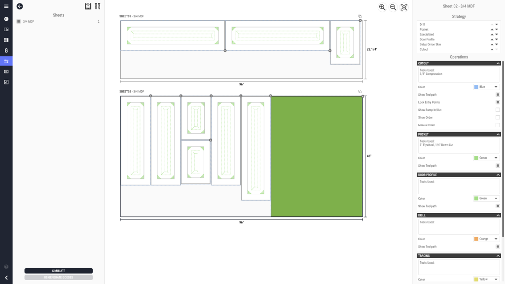 Pocket and door profile operations (and their relevant tenons) can be assigned a smaller tool pass to minimise inside edge corners