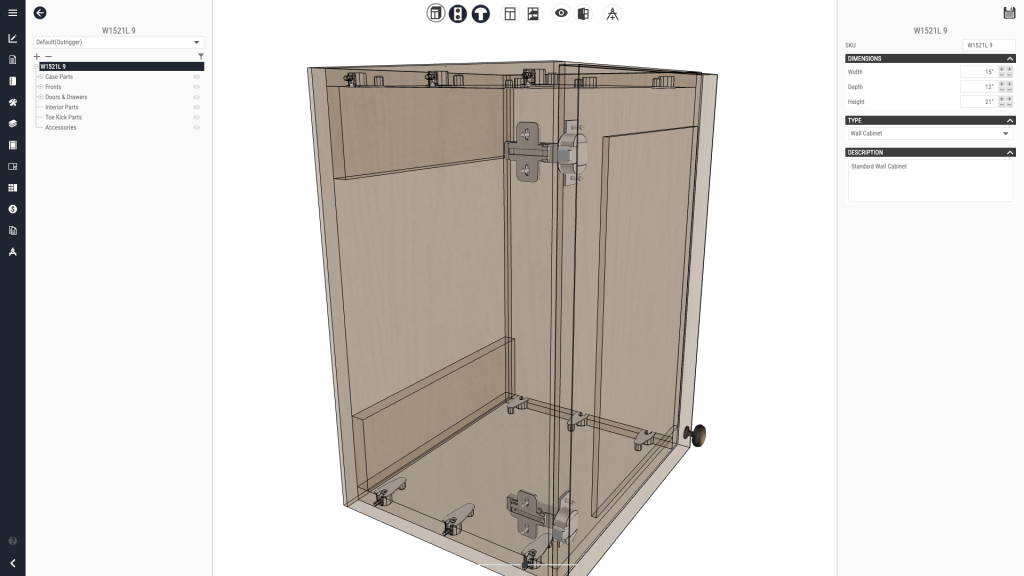 Decorative Items and appliances can be added directly in the cabinet wireframe editor, giving full control of accessories present in constructions.